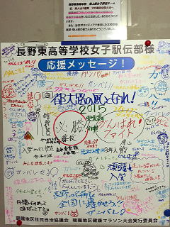 会場では駅伝チームへの寄せ書きが行われ、応援メッセージが学校に届けられました。