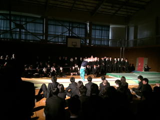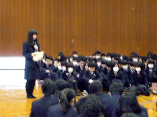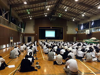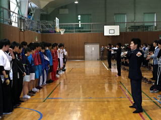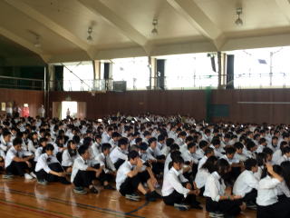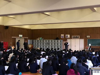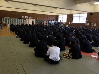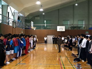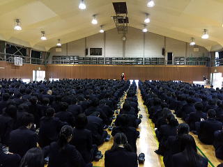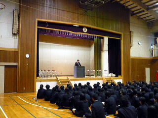 本校体育館にて終業式が行われました。校長講話では、「不満や愚痴とは自分自身の努力のなさからくるもの。希望や夢を語り努力をする魅力のある人になってほしい」というお話がありました。