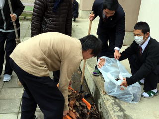 落ち葉集め、側溝、ゴミ拾いなど、校内美化作業が行われました。敷地内にあんなにあった落ち葉も、生徒たちが自主的に働いてくれたおかげで、綺麗に片付けられました。