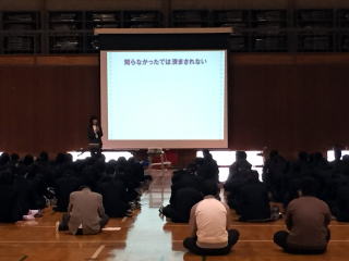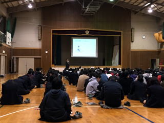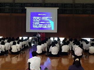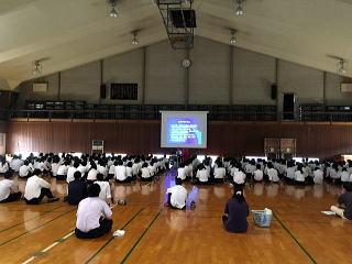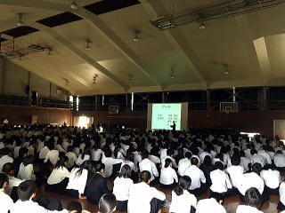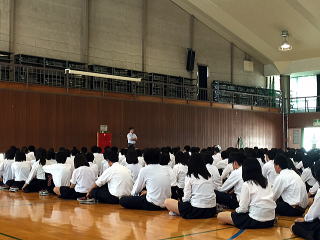 長野赤十字病院 産婦人科部長の本藤 徹 医師を講師にお招きして、1学年保健講話が本校体育館にて行われました。「性感染症・エイズ予防について」という演題で、具体的なお話をしていただきました。