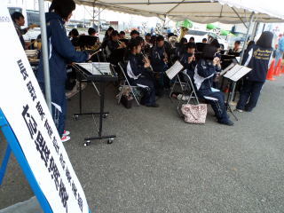 この大会で陸上部が大会サポート、吹奏楽部はアトラクション演奏を行いました。