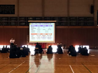 来年度の新3年次に向けての科目を決める、科目選択説明会が体育館にて行われました。