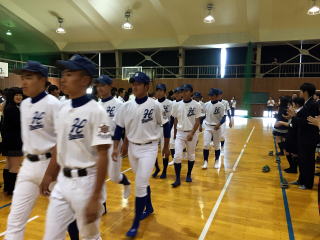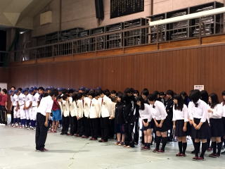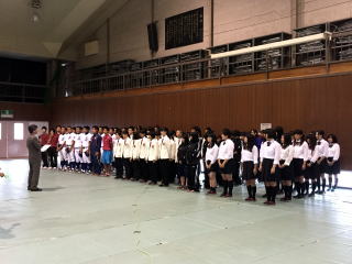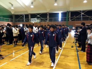 本校体育館にて各大会での健闘を祈って壮行会が行われました。校長先生からは「3年間の努力を実らせるように一つ一つの試合を大事にして欲しい。」など激励の挨拶がされました。校歌では、野球部を中心に体育館中に割れんばかりの歌声が響き渡りました。