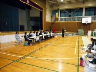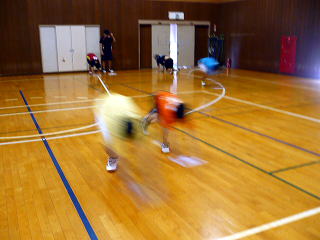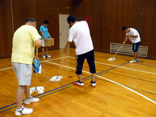 本校第一体育館のワックスがけをバドミントン部の生徒が行いました。
