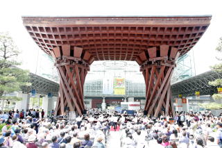 ”ラ・フォル・ジュルネ”は国内外から一流のアーティストが集結する音楽祭で、県内の高校では唯一招待されたそうです。2日は「しいのき迎賓館 石の広場」という屋外ステージでの演奏、3日は石川県立音楽堂と鼓門前で、ベルリオーズの「幻想交響曲」などを演奏しました。