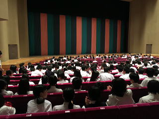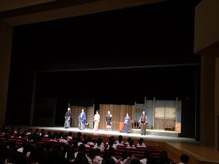 雨が心配されたこの日、雨から曇りに落ち着き、生徒は無事にホクト文化ホール会場まで到着しました。今回は篠ノ井高校犀峡高校との合同開催でした。劇は笑う場面が多々あり、笑い声や拍手が会場に響き渡りました。