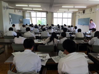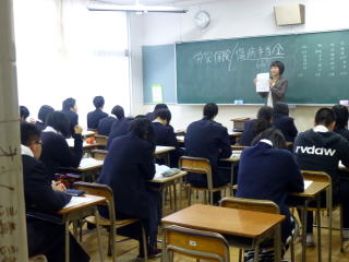 1年生対象に5時間目にはSO長野代表の伊沢喜久子さんによる「スペシャルオリンピックスと人権課題」と題した講演、6時間目には本校馬場先生の現代社会で研究授業が行われました。