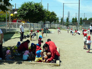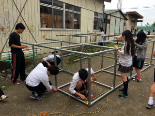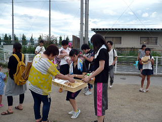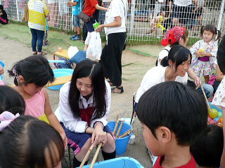 本校のすぐ隣にあるアピック保育園夏祭りがあり、生徒が屋台のお手伝いをしました。