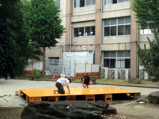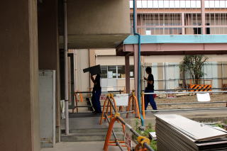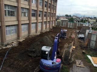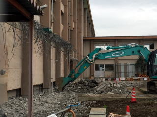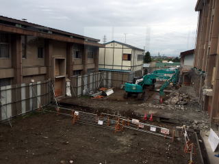 ご覧の通り2階の渡り廊下が取り壊されました。もちろん復元される予定ですが、大規模な工事に生徒・職員とも驚きの毎日です。