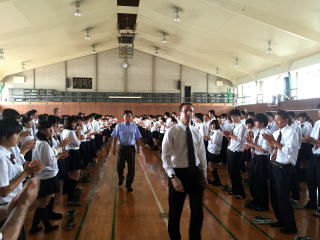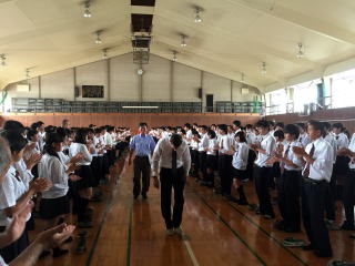 また離任式では、本校に5年間勤務されたMicahel Goe(マイケル ゴー)先生の離任式が行われました。この8月から須坂商業高等学校にお勤めになります。長い間ありがとうございました。