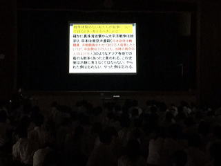 講師の小林照幸さんに「沖縄の文化・歴史及び戦争について」という題目で、2年生が講演を聴きました。11月の沖縄修学旅行が間近に迫り、戦争の残酷さなどの内容を生徒も真剣に聞いていました。