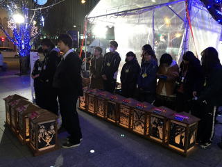 第13回長野灯明まつりが6日~14日まで開催され、本校生徒会有志約30名が「灯り絵」の灯籠を善光寺表参道の石畳に設置したり、表彰式のサポートをするボランティアに参加しました。