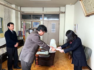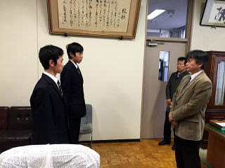 3年生の土屋君、1年生の杉田君のインターハイ出場・国体出場の激励会が校長室で行われました。生徒それぞれ大会の抱負を述べ、校長先生からは「長野東高校、長野県の代表としてがんばってきて欲しい」という言葉を頂きました。インターハイは、1月19日~23日、国体は1月27日~31日で共に岩手県盛岡市で行われます。