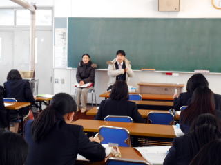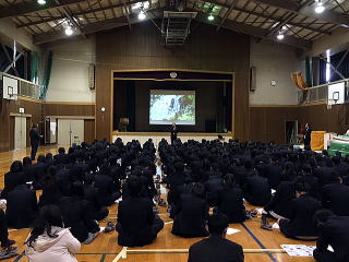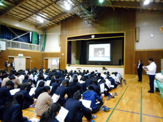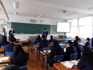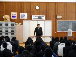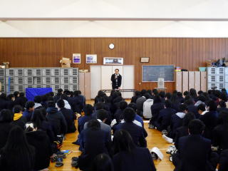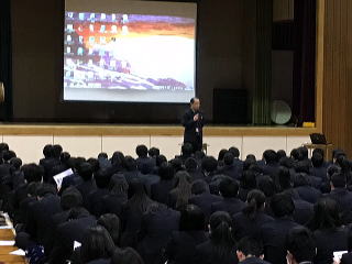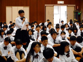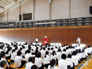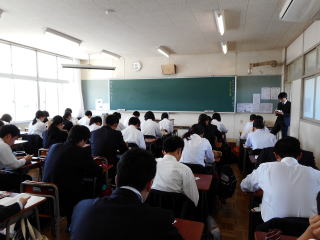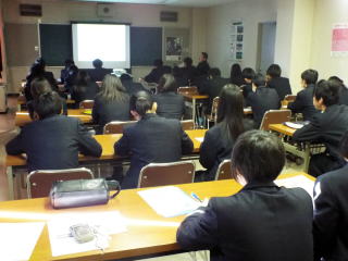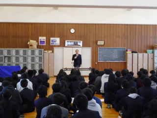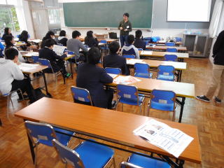 まず講師の先生から講話を聴き、質疑応答、まとめをしました。質疑応答の際には、積極的に質問を投げかけていました。事前準備をしっかりしていて、講話の際も聴く姿勢がきちんと出来ていました。