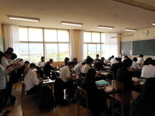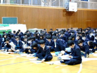 2年生が、4時限目で、卒業生の話を聞く会が文系四大・理系四大・短大・看護医療・就職の5分野に分かれて開かれました。その中で、「量より質が大切」「基礎基本を大切に」など、自分の体験や学習の仕方など細かく話をしてもらいました。