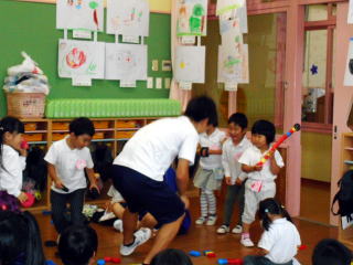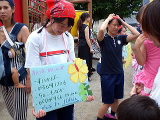 毎年恒例のあぴっく保育園夏祭りのボランティアに3年生を中心に18人が参加しました。6つの屋台にそれぞれ3人づつ、売り子をしたり呼び込みをしたりと、5時から6時半まで(生徒によっては花火が終わる7時半まで)よく働いてくれました。盆踊りの途中で通り雨にも見舞われましたが短時間でやみ、最後はみんなで花火をみて、保育園からお土産をいただいて解散しました。子どもたちと向き合ったときの笑顔がとてもすてきでした。