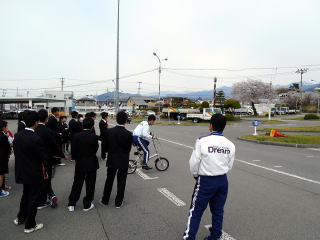 本校生徒の自転車事故が多い状況を踏まえて、自転車の安全な利用を促すために、自動車教習所の協力を得て体験型の講習会を教習所内で行いました。