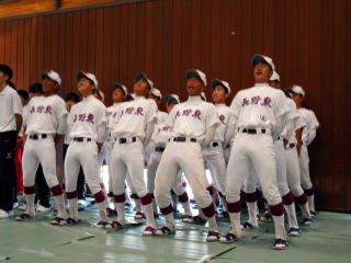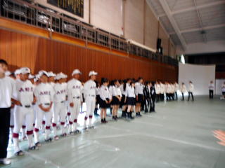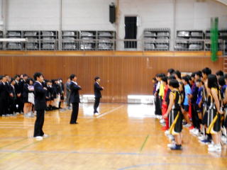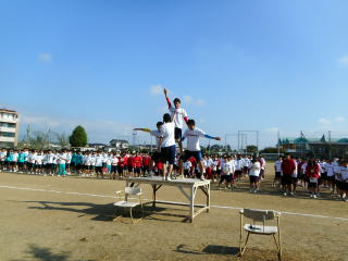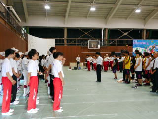 応援委員の先導でエールが送られ、選手代表として新体操の鈴木智大君が挨拶をしました。