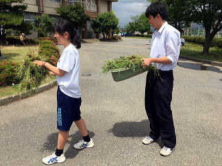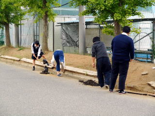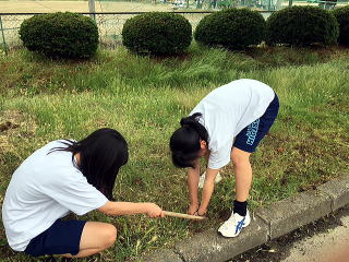日常の外掃では手の回らない部分を3学年全体で、掃除しました。全員で協力することで、団結力が高まり敷地内がみるみる綺麗になりました。