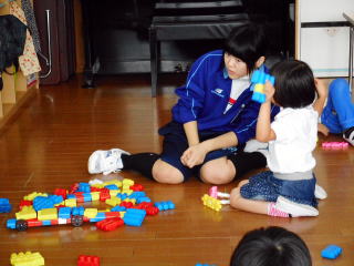 本校のすぐ隣にある「杉の子あぴっく保育園」で、3年生の「発達と保育」を選択している生徒が実習を行いました。あいにくの天気で、室内保育のお手伝いをしました。