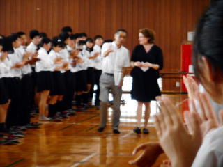 離任式では本校で2年間お世話になった、シドニーペックさんが帰国されるということで、お別れの挨拶がありました。日本を離れることは、本当にさみしい。生徒にはいつも笑顔