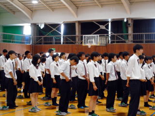 東雲祭(文化祭)の開会式の前に、全国大会に出場する陸上部、体操部空手の選手、夏の高校野球長野県大会に出場する野球部、吹奏楽部、合唱部、演劇部、詩吟の生徒の激励を込めて壮行会が行われました。