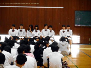 生徒会主催による歓迎会が、第2体育館で行われました。主には部活動の紹介で、実演できない部活は前もって撮った映像を流しました。