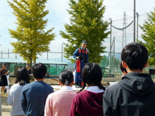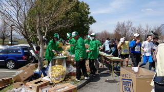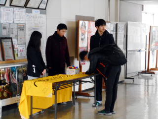 若穂地区一帯をコースにしたマラソン大会が行われ、東高生はボランティアとして協力してきました。1年生1名、2年生4名、生徒会顧問1名で5km地点の給水を行いました。若穂中学の生徒3人も同じ場所でボランティアを行い、わずかな時間ではありましたが高校生と中学生の交流もできました。5km地点はイーストアというスーパーの駐車場だったのですが、お店側から豚汁のサービスがあり、心も体も暖まりました。