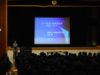 長野赤十字病院 産婦人科部長 本藤 徹 先生に来ていただき「性感染症・エイズ予防について」、というタイトルで講話をお聞きしました。