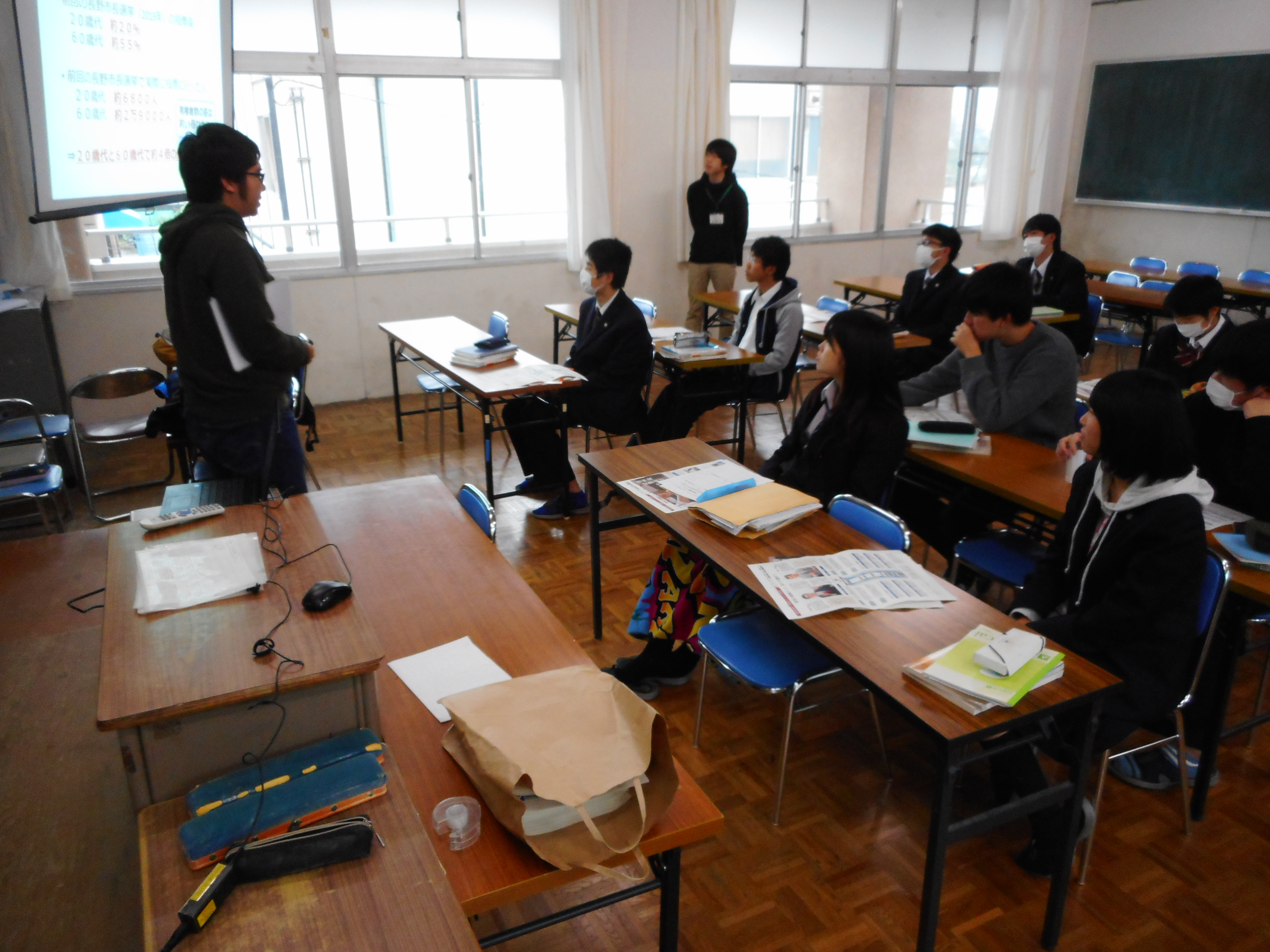3年現代社会研究の授業にSTAP(信州投票率を上げようプロジェクト)の学生が参加してくれました。今週末に控えた市長選の資料を使ってグループワークを行いました。生徒たちも活発に議論をして時間が足りなくなるほどでした。