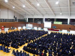 終業式・離任式・表彰・壮行会が行われました。終業式では、校長先生より「時には小学生のように純真な気持ちになって、目の前の事象や課題に「?」を立て、考え、その結果を言語化してアウトプットし、他者とコミュニケーション力をさらに研いてはしい。また、正解を短絡的に求めず、あえて遠回りすることで、生きる力・本当の学力を高められる。そんな東高生になってほしい。」というお話がありました。その後、女子駅伝チームとスピードスケートの小山香月(2-1)さんの県教委生徒表彰の紹介と空手全国選抜大会に出場する木原帆乃(2-3)さんと管楽器個人・重奏コンテスト本大会に出場する小野澤諒(2-1)さん・目黒すず(2-4)さんの壮行会が行われました。 壮行会に引き続き、志津教頭先生をはじめ12名の先生方との離任式が行われ、それぞれの先生方から、今までの思い出や生徒へのメッセージをいただきました。生徒たちも真剣にお話を聞き、先生方の思いを受け止めてくれていました。