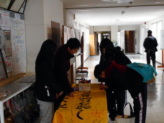 生徒会の応援委員会を中心に、全国高校駅伝に出場するチームに向けて、朝と放課後の2回全校生徒からメッセージを書いてもらいました。