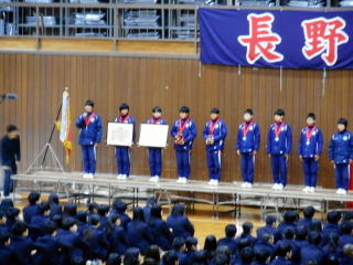全国高等学校スケート競技に出場する3名を奨励会が行われました。出場する生徒は、3年杉田君、2年小山さん、西原さんです。開催地は山梨県富士吉田市で行われます。応援よろしくお願いします。