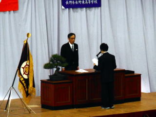 雨が心配されましたが、晴天に恵まれたこの日、第44回長野県長野東高等学校の入学式が挙行されました。入学生241名が出席をして、入学を許可されました。