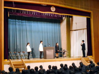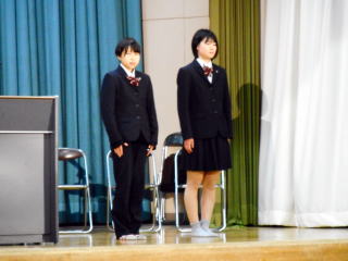 新入生代表挨拶では、1-2の小原さんが、感謝の気持ちとともに本人の決意(都大路で走ること)を全校の前で伝えました。
