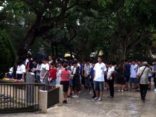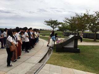 初日は、朝早く長野駅に集合し、新幹線、山手線、モノレールで羽田空港に到着しました。飛行機乗るのが初めて生徒も多い中、揺れが大きくその度に悲鳴がおこりました。到着後はバスで平和祈念公園に移動し、戦争被験者の講話を聴きました。戦後約70年が経過し、実際に戦争を被験した方も少なくなってきており、貴重なお話をお聞きすることが出来ました。その後、国際通りに向かい夕食を食べ、お土産を購入しました。