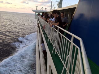 2日目は、防空壕(ガマ)に向かいガイドさんから、当時の出来事を鮮明に教えていただきました。足下が悪い中、なんとか壕の中に入りました。ひめゆりの塔では、ほぼ同じ年齢の生徒が亡くなってしまったということで、生徒も熱心に遺作などをみていました。そして美ら海水族館を見学して、フェリーで伊江島に向かいました。一家庭で多いところは7人の生徒を受け入れていただきました。