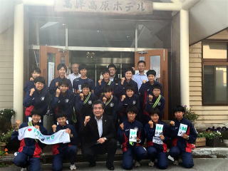 8月19日 陸上駅伝部合宿 小諸市高峰高原に合宿している宿舎先に、小諸市長の小泉俊博様が応援に駆けつけました。