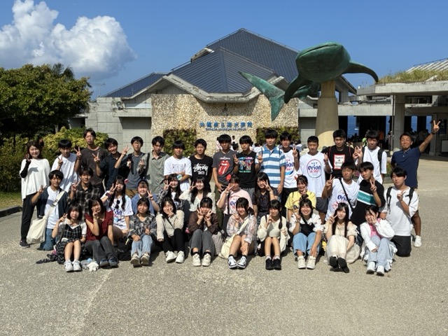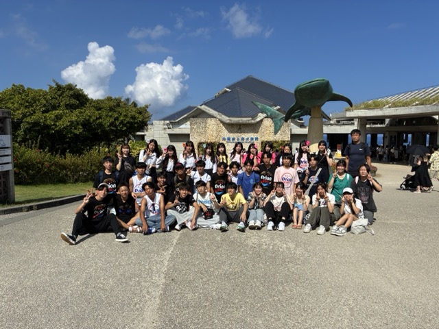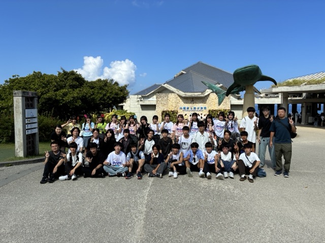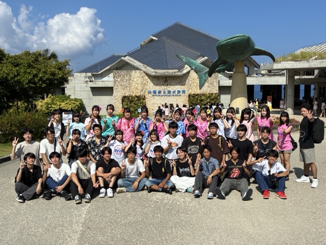 修学旅行3日目は、「コース別学習」の1日でした。午前中は、全員で美ら海水族館へ。集合写真を撮った後、限られた時間の中で海の生き物たちに釘付けとなりました。午後は、各自選択したコースに分かれて見学・体験活動を行いました。