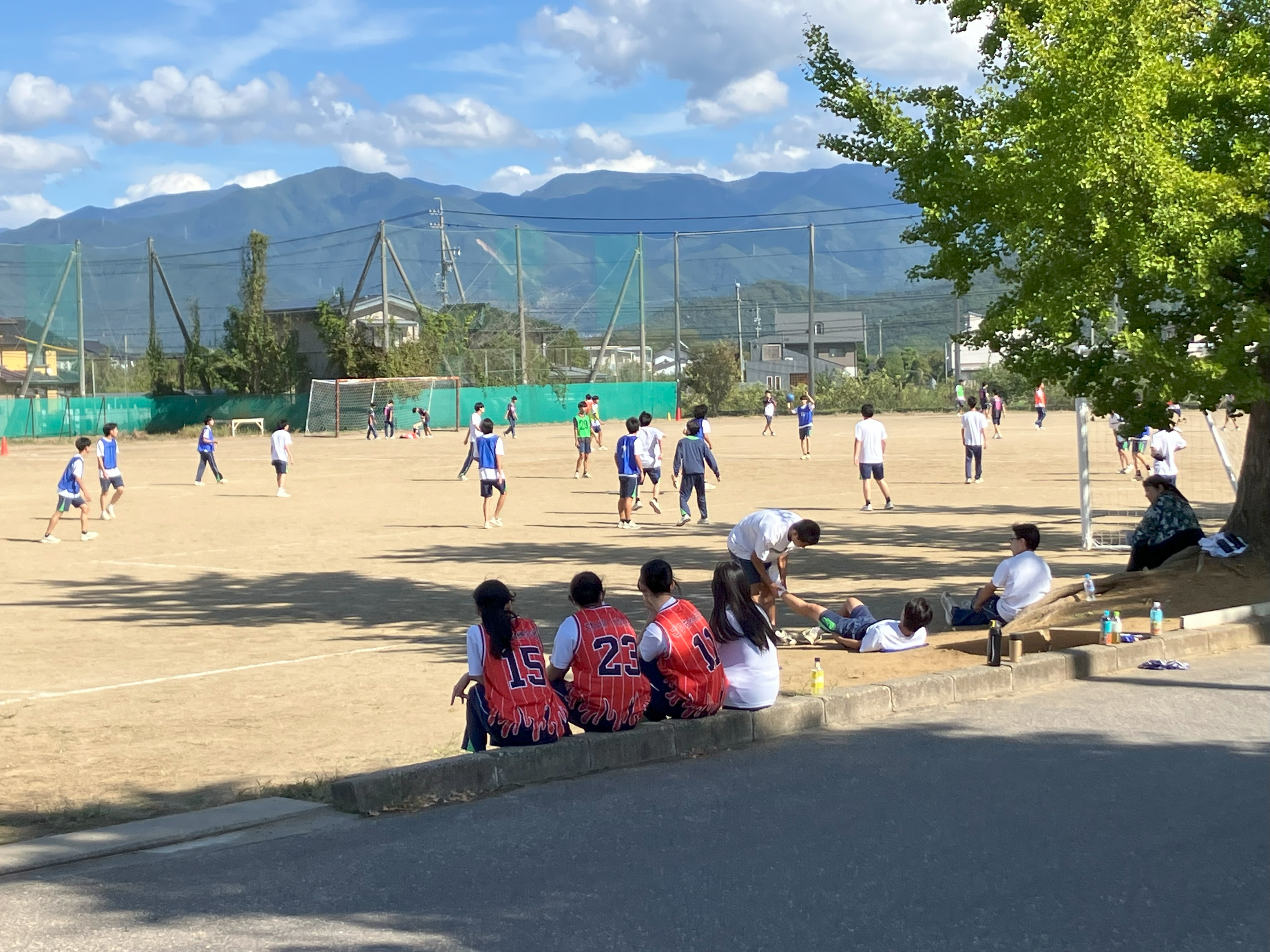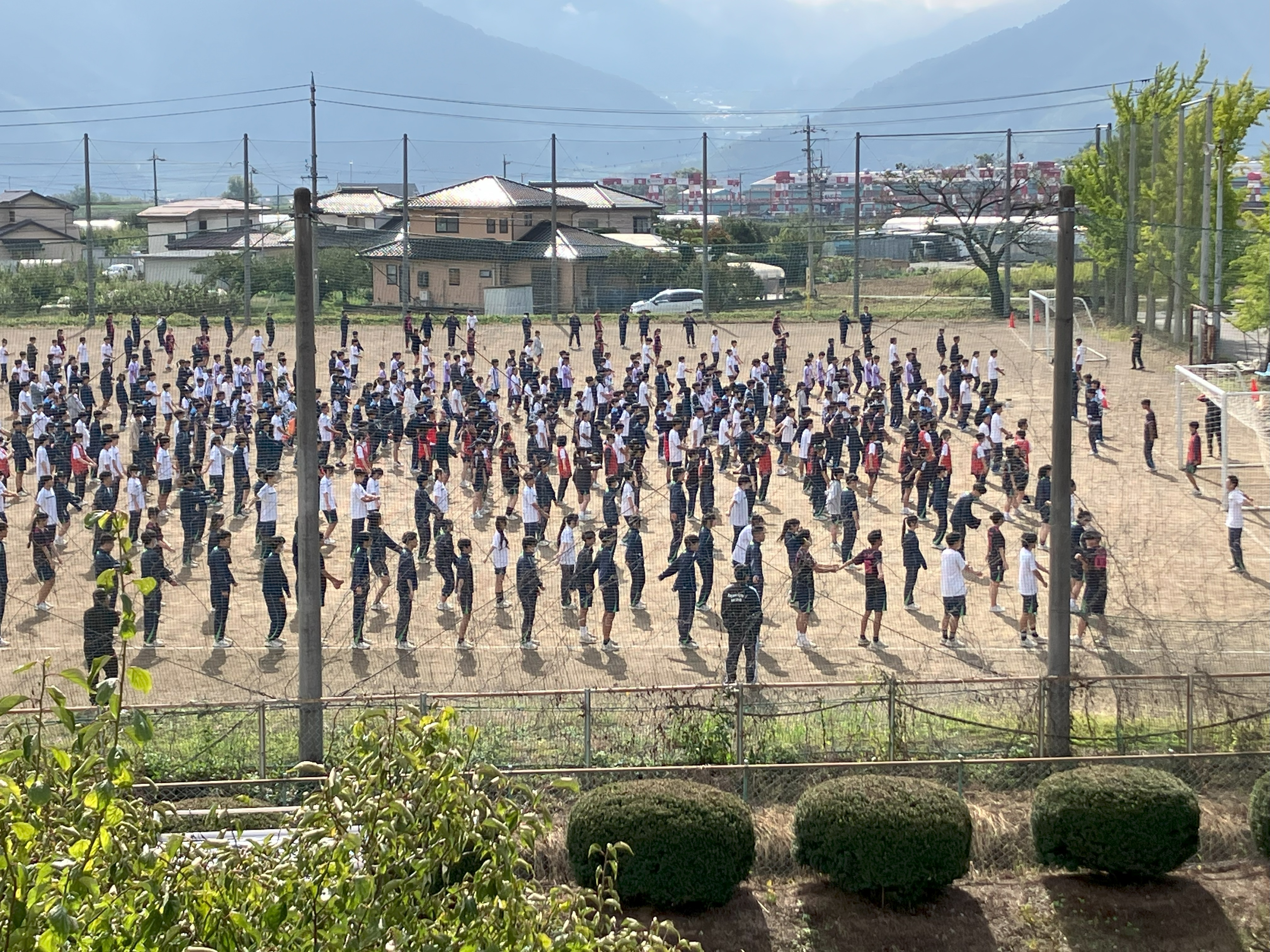 北信総体へ出場するクラブに対する壮行会があり、全校生徒でエールを送りました。