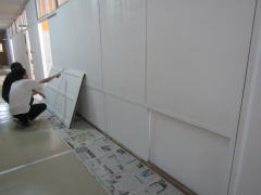 毎年行われている、生徒が行う環境整備事業ですが、本年度も普段使っている教室や、その廊下の壁のペンキ塗りを行いました。教室を併用するちょうど全日制の2学年が修学旅行に行っているタイミングであり、普段使っている施設をより気持ちよく使用する目的で行いました。