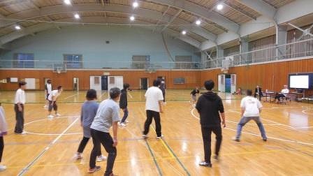 | 10月20日(金) 秋季クラスマッチ 今回のクラスマッチは、ドッジボールを行いました。ただのドッジボールではなく、ルールをアレンジしての取組であったため、最初は戸惑いながらも、歓声をあげながら楽しい時間を過ごすことができました。防護壁を設置したゲーム(写真)では、攻撃側も工夫をこなし、頭上からの攻めや、早いパス回しなどがみられました。競技終了後は、恒例の生徒会からのおやつを受け取り、楽しく会食する姿も見られました。 |