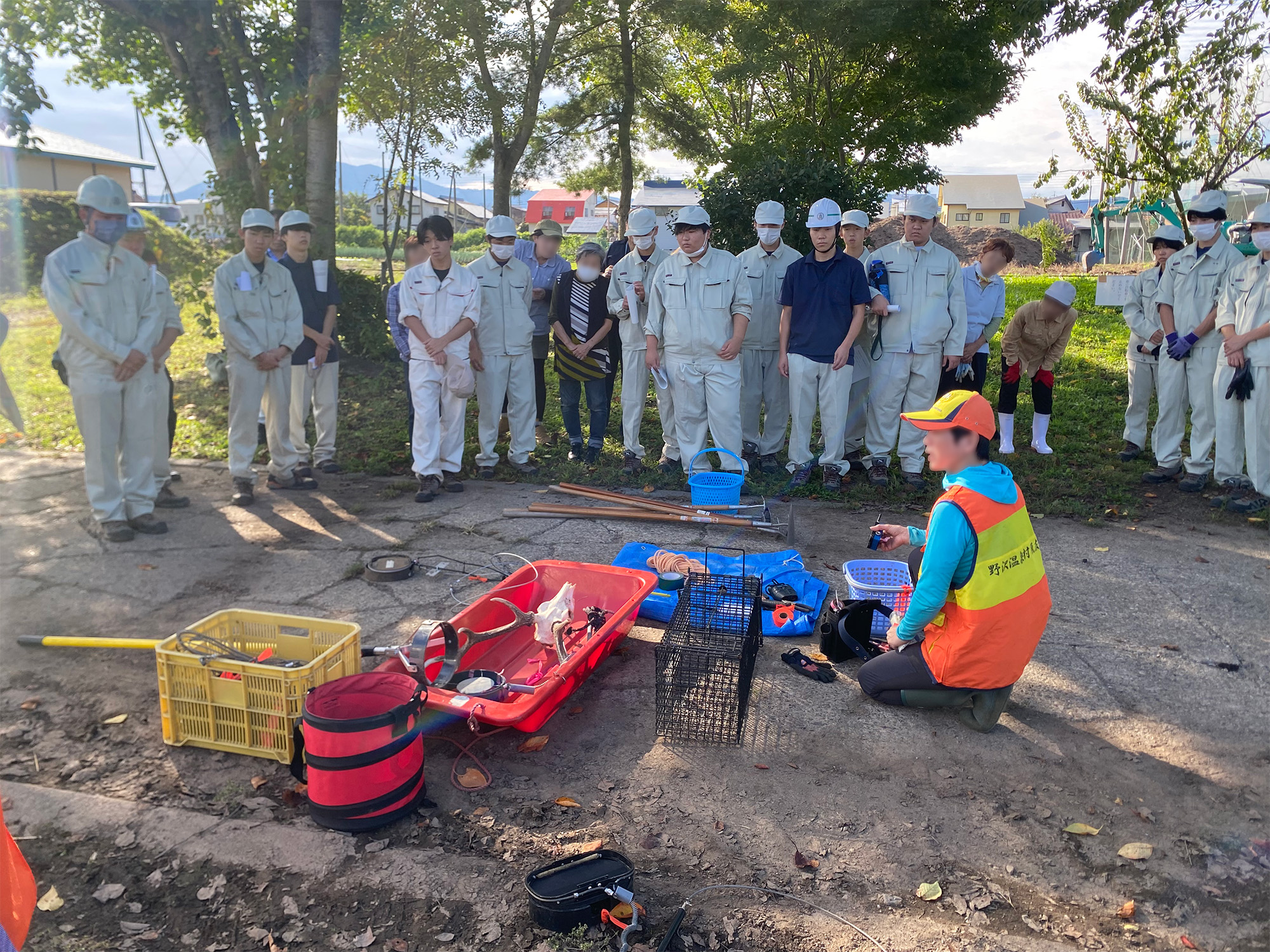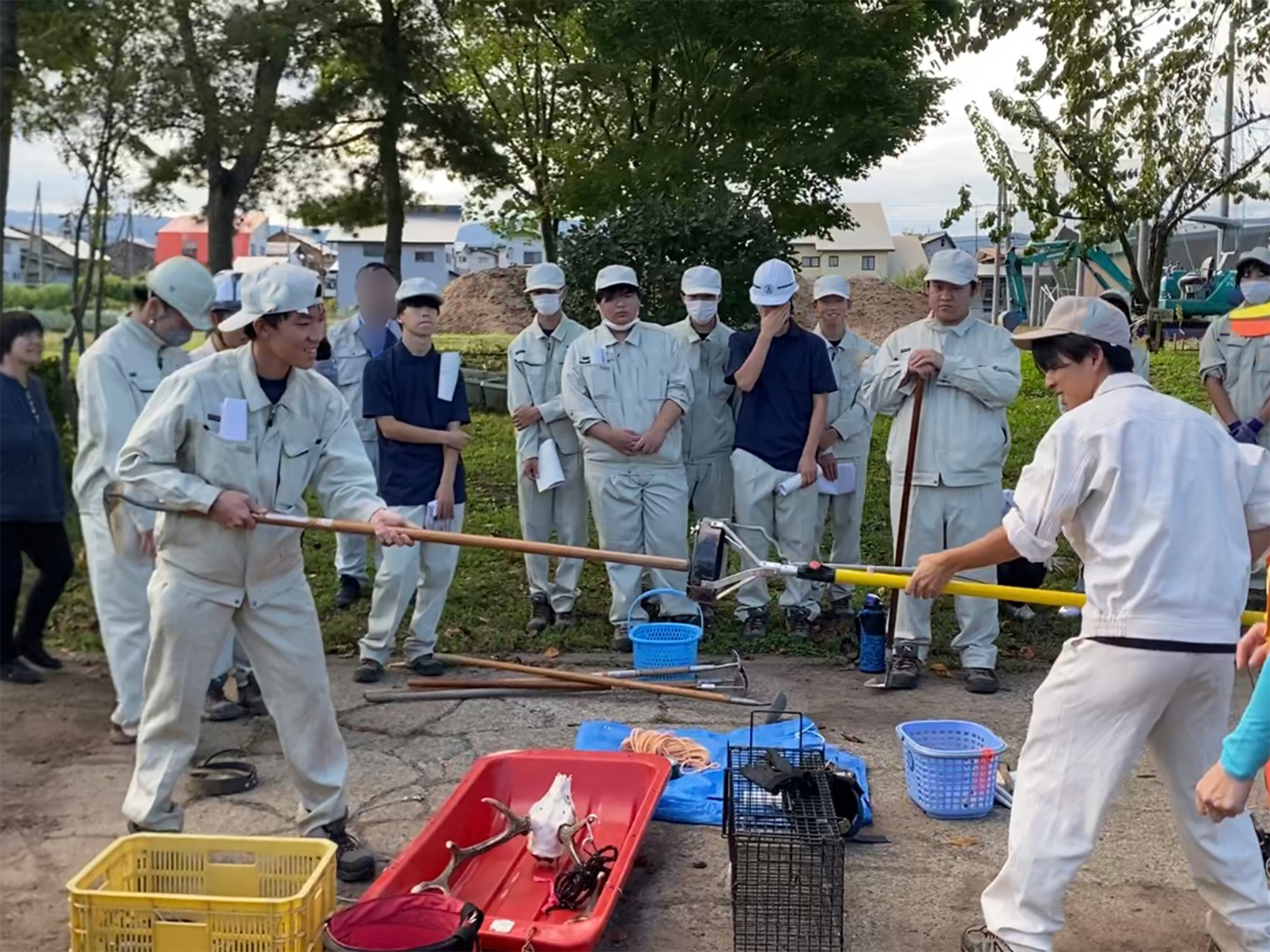事前の講義では、野生動物対策の必要性や地域の現状について学習。その後、野沢温泉村猟友会の皆さんのご指導のもと、実践的な罠の設置方法を習得しました。地域の方々と協力しながら、大切な農作物を守るための知識と技術を身につける貴重な機会となりました。