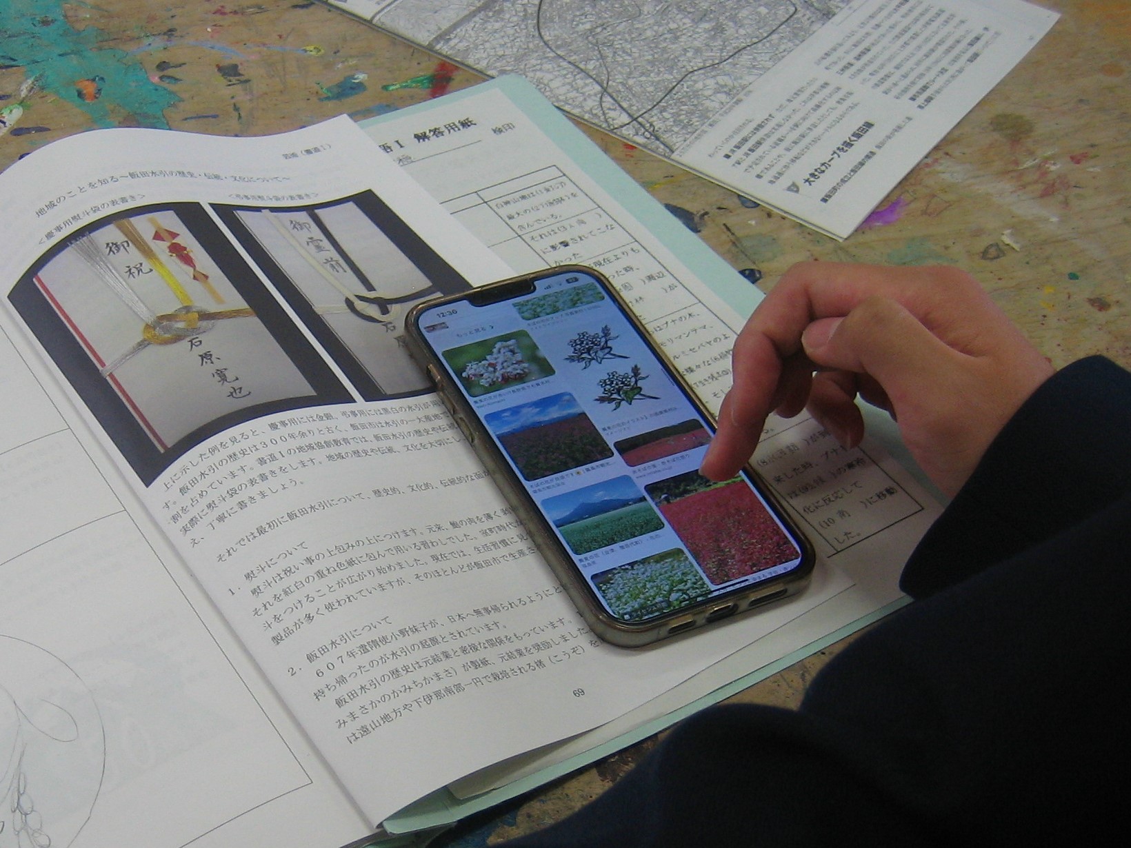 さらに、インターネットを利用し地域の芸術文化について調べたり、舞台芸術における飯田方式を学習しそのよさや課題について考察したりしました。