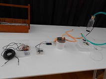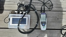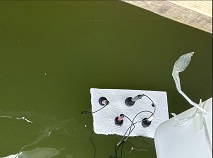 採取した水は、昨年度課題研究「諏訪湖班」が製作した『水質自動計測装置』を使用し、水質の調査を行いました。