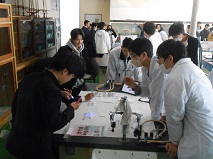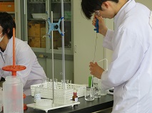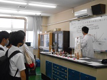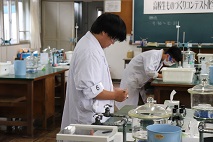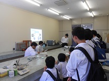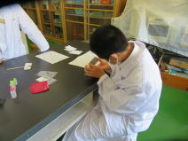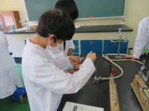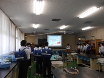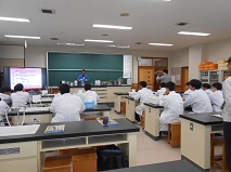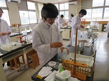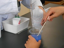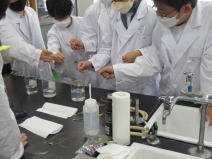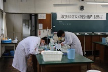 令和6年9月17日(火)に、中学校から多数の中学生が来校しました。環境化学科では、実際に行っている実習を体験してもらいました。