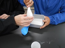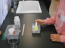 令和6年11月18日(土)に、本校化学教室において、岡谷市内の小学生を対象に『おもしろ化学実験教室』を開催しました。親子あわせて40名程の参加があり、スライム、つかめる水、ダイラタンシーボール、液体窒素の化学実験を体験していただきました。当日は多くの参加者に来ていただき、化学の楽しさを感じていただけたと思います。