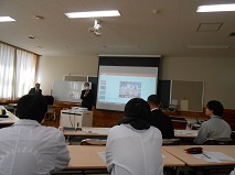 3年生が4班に分かれ、1年間取り組んできたテーマについて研究発表をしました。