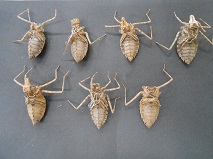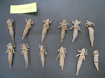 メガネサナエは絶滅危惧種に指定されているトンボで、日本では諏訪湖や琵琶湖、愛知県の一部のみに生息しています。今回の現地調査は諏訪湖ヨットハーバーにて行い、メガネサナエの他にもたくさんの羽化がらを見つけることができました。