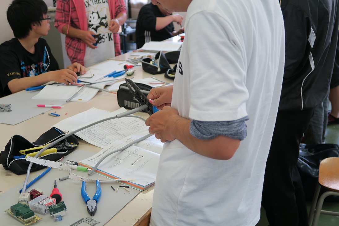 ![]() 電気工事をする際に必要な資格。そのための学習をし、電気の知識・配線の技術を身に付ける。電気系の学習を深めたい生徒には魅力的な資格だと思います。 電子機械科の生徒14人が放課後の講座、練習を始めました。 |